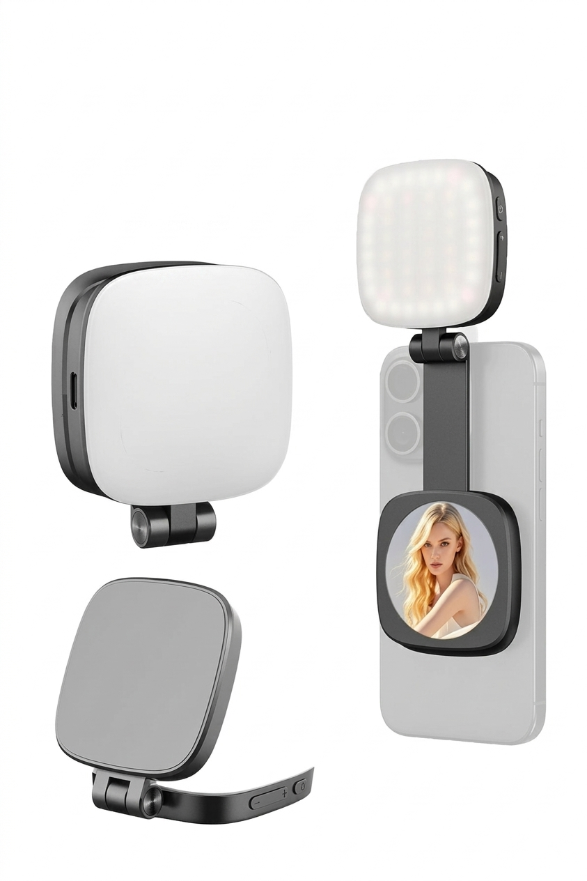 İçerik üreticileri için tasarlanan bu kompakt ışık, telefonunuzun arka kamerasıyla çekim yaparken bile kendinizi görmenizi sağlayan dahili bir aynaya sahiptir.